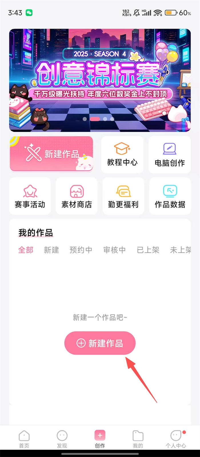 进入易次元的创作界面后,我们只需点击【新建作品】按钮,就能正式开启游戏制作的第一步啦。