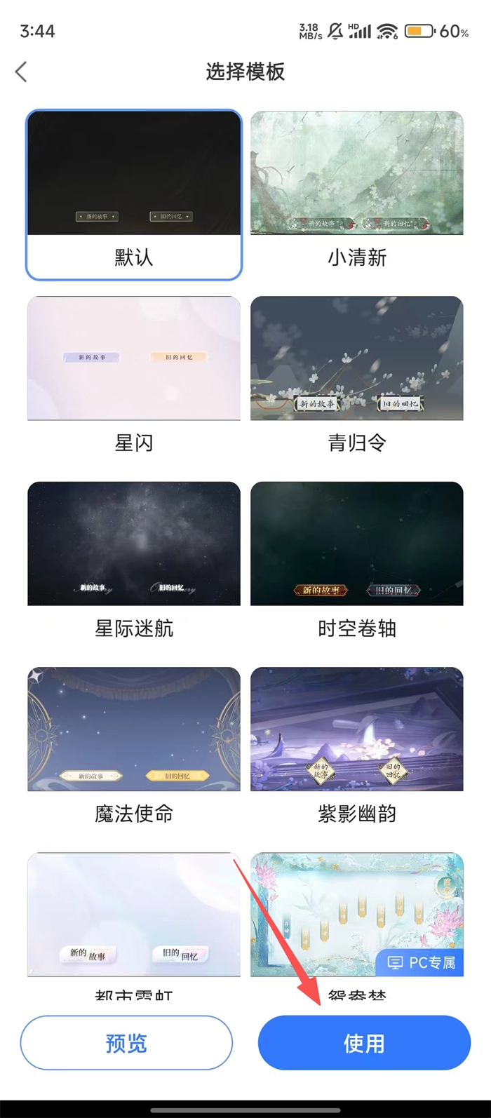 进入模板选择页面,选好心仪的模板后点击【使用】按钮,就能着手进行游戏内容的创作啦。