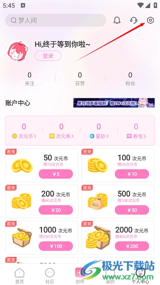 进入个人中心界面后,需点击右上角的齿轮图标。