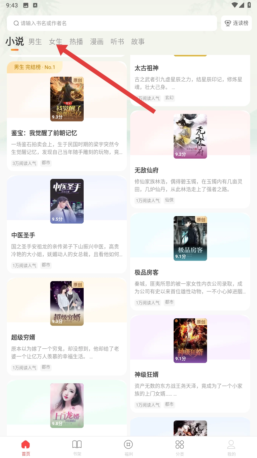 打开【连尚读书】应用后,在首页找到并点击【女生】专区,就能进入言情类书籍的专属页面啦。