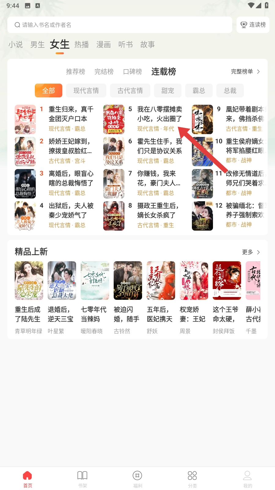 你可以在女生分类的连载榜单里,选一本自己感兴趣的书,然后点击进入阅读页面哦。