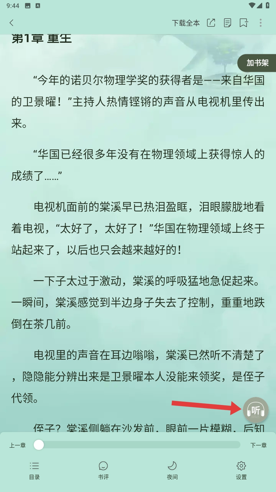 进入阅读页面后,点击右侧的【听】按钮,即可进入朗读设置界面。
