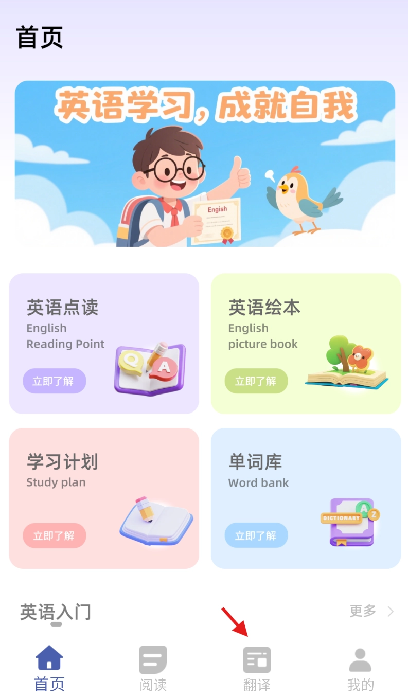 开始学习:在单词库、绘本等学习板块中,挑选自己感兴趣的内容,利用点读、翻译等功能来开启学习之旅。
