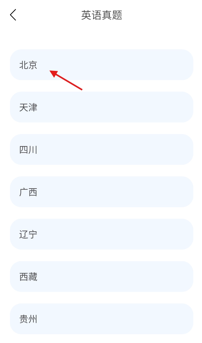 完成地区选择后,页面会自动展示往年的北京英语高考真题,你就可以开始查看了。
