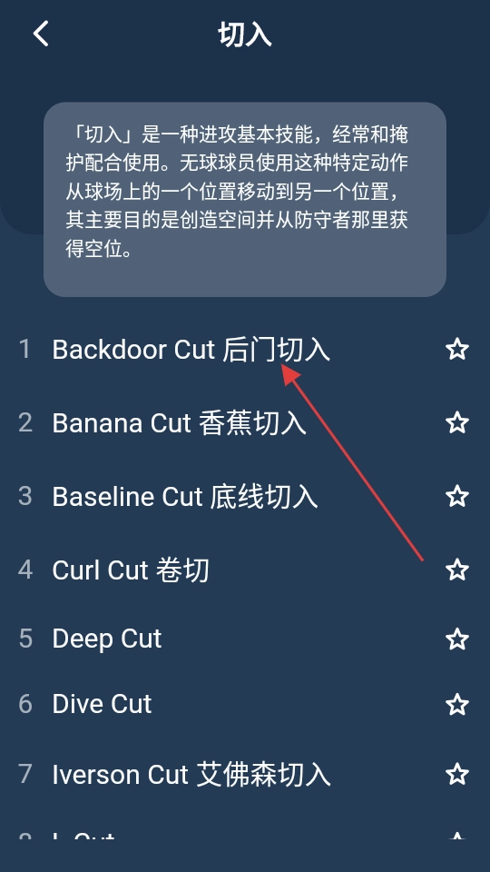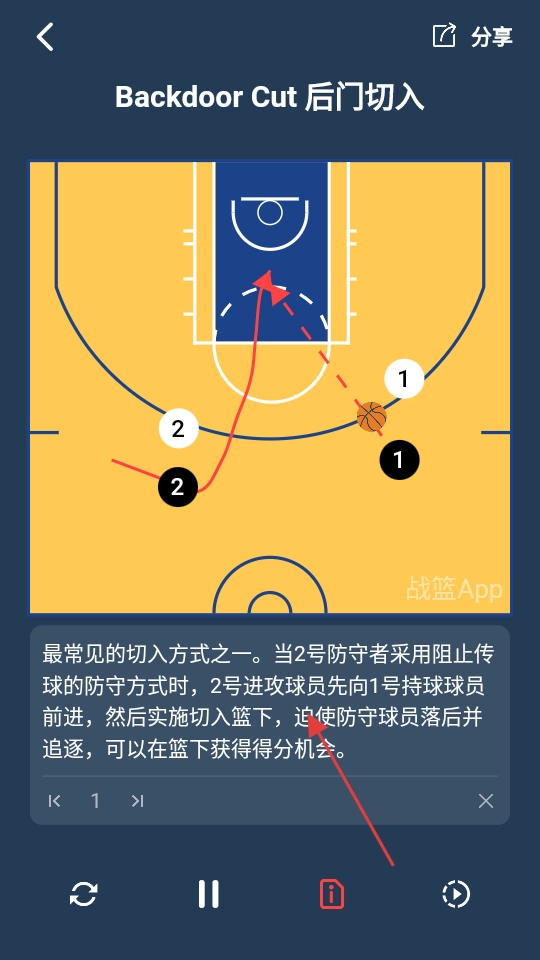 在战术详情页面,能查看【Backdoor-Cut-后门切入】战术的图示与文字说明,从而知晓该战术的执行方式。