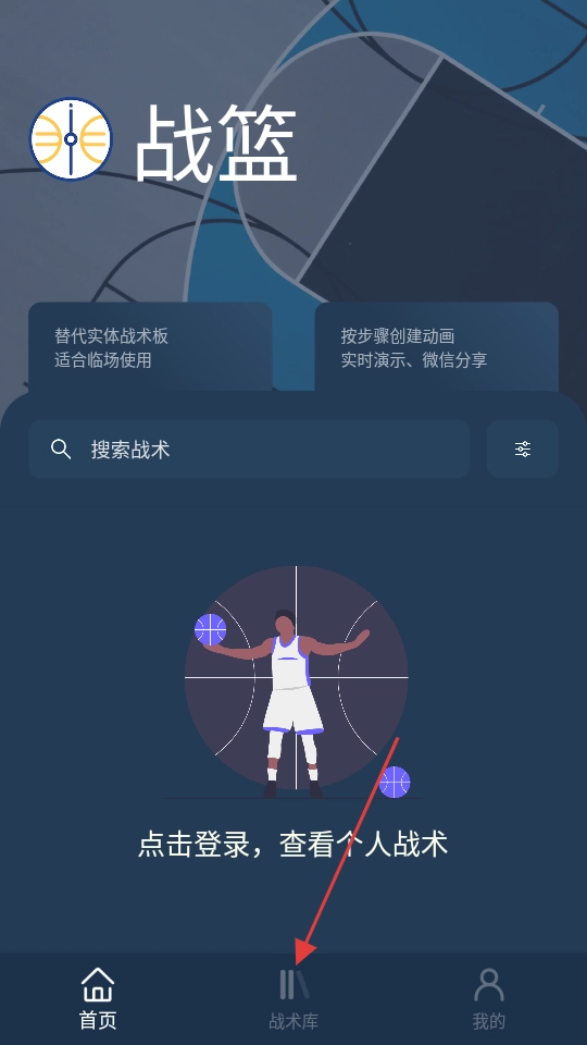 点击界面底部的【战术库】选项,即可进入战术库页面。