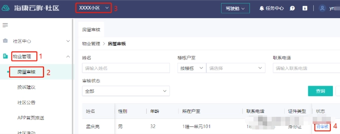 3、管理员进行房屋审核,同意业主申请