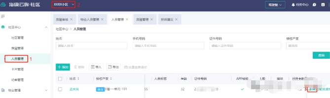 2、切换对应的小区后,业主申请自己的房屋