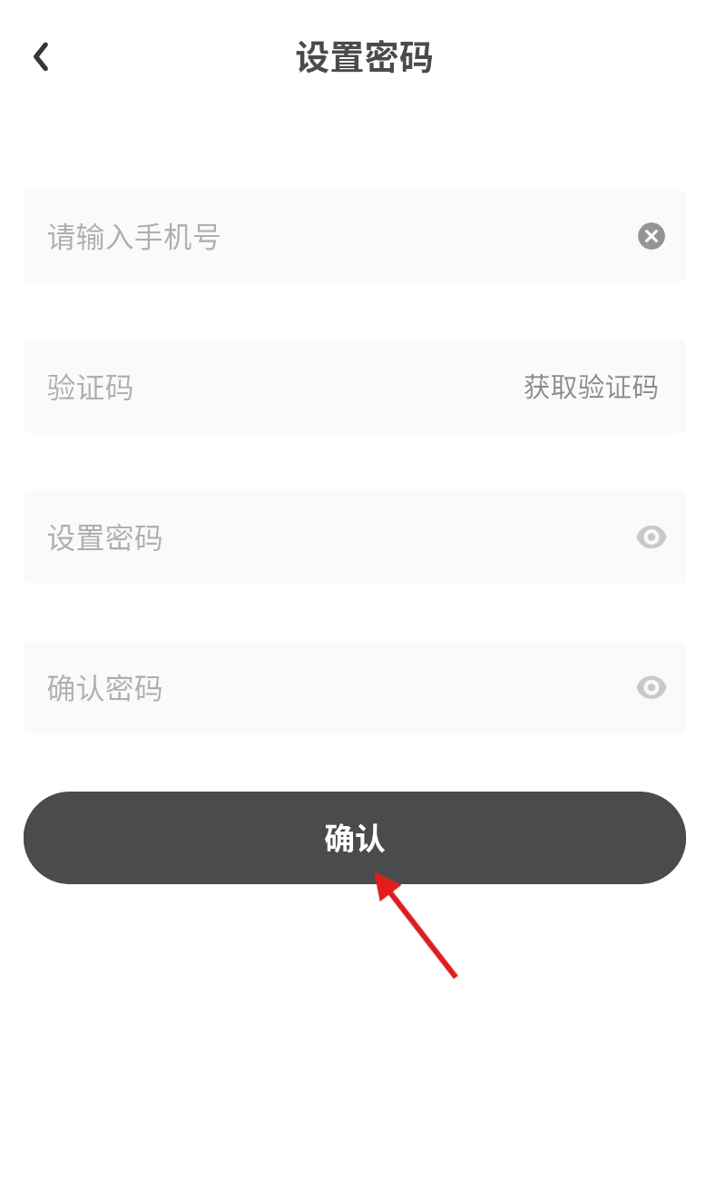 通过输入手机号获取验证码,接着连续两次输入你想设定的密码,在确认两次输入的密码一致且无误后,点击“确认”按钮,这样就完成设置了。
