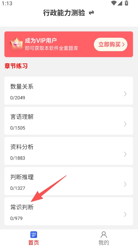 打开软件,选择行政能力测验的常识判断模块进入。