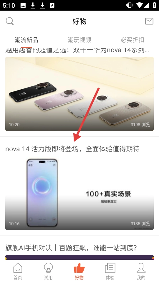 在好物页面,点击【nova14活力版即将登场,全面体验值得期待】这一内容,就能进入对应的详情页面。