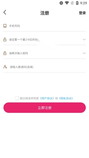 在注册页面填写手机号、验证码等相关信息后,点击完成注册按钮即可。