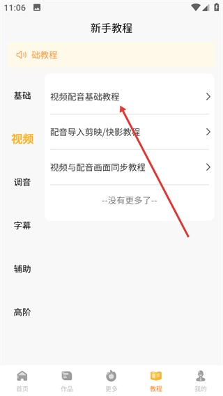 在视频类教程里找到【视频配音基础教程】,点击进入该教程的详情页面。