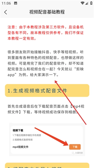 在教程详情页查看视频配音的操作步骤,比如生成视频格式配音文件这类内容,以此完成教程的学习。