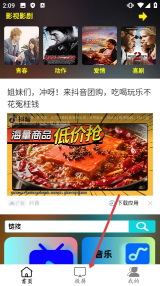 在软件首页找到【投屏】按钮并点击,进入投屏界面后,即可查看各类投屏工具和剪辑工具。