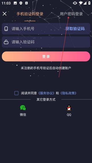 在登录页面,点击【用户密码登录】选项,即可切换至用户密码登录界面。