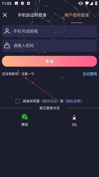 在用户密码登录界面,点击【注册一个】按钮,即可进入注册界面。