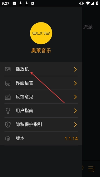 在奥莱音乐的菜单里,点击【播放机】这一选项,就能进入与播放机相关的设置界面。