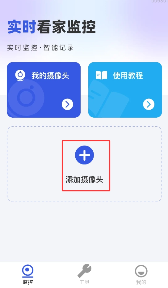 开启监控实时看家功能后,点击首页的“添加设备”按钮,即可进入摄像头配置界面。