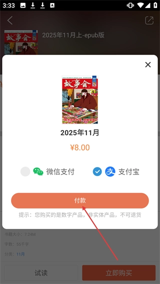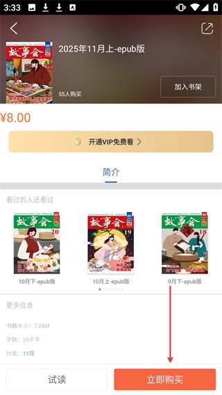 在2025年11月上的epub版本详情页面,点击【立即购买】按钮。