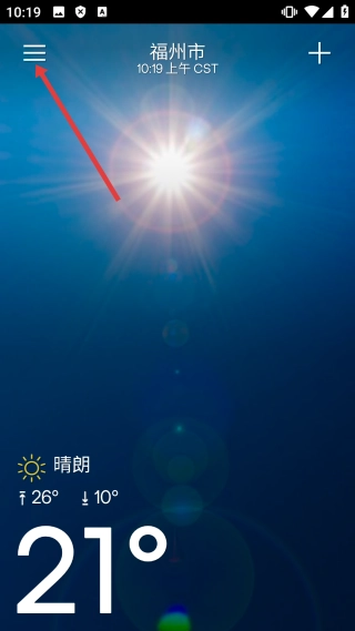 在天气页面,点击左上角的菜单按钮,即可进入功能菜单页面。
