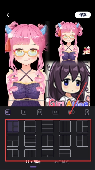选择合适的【拼图布局】,调整图片的排列样式。