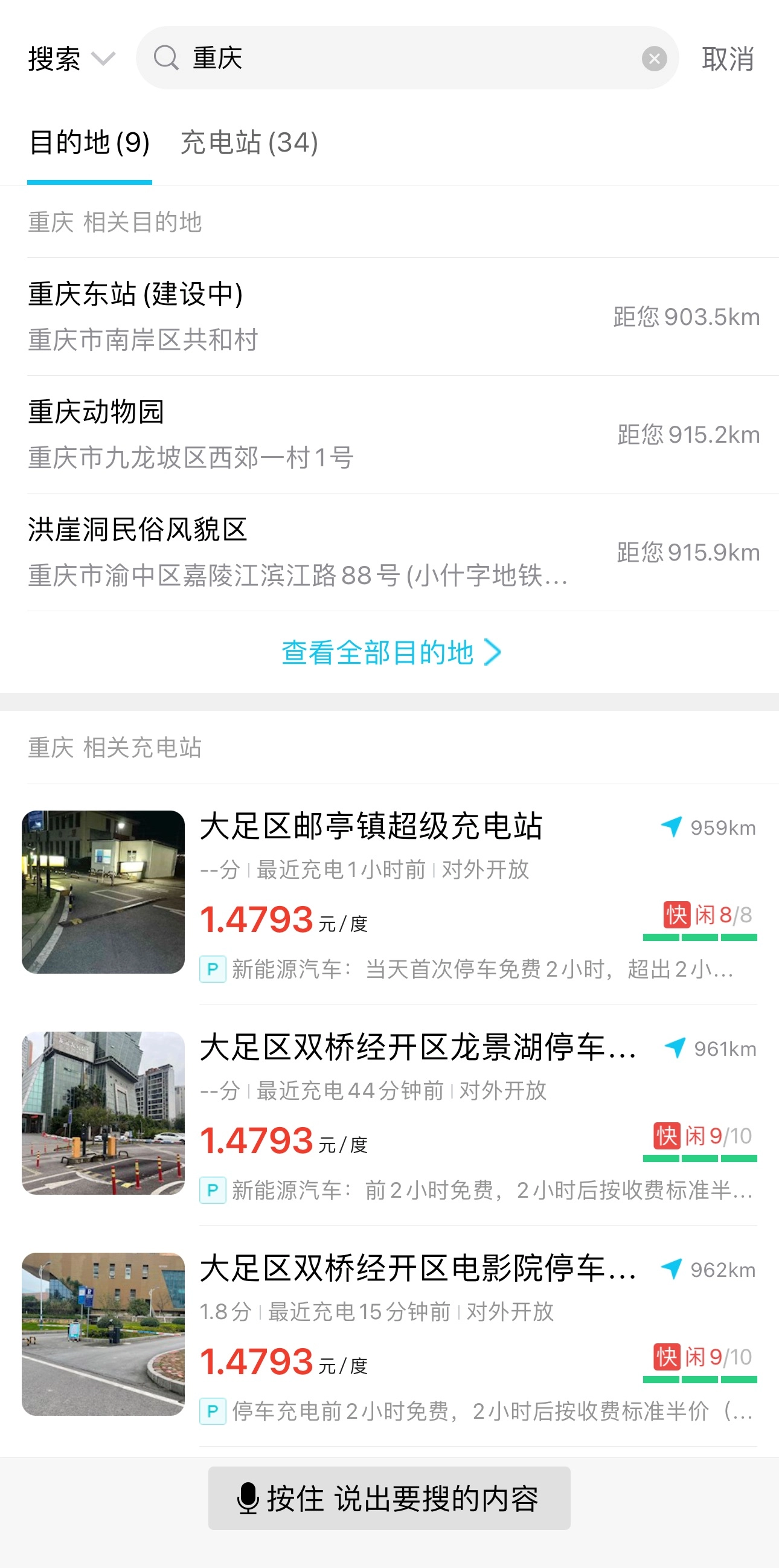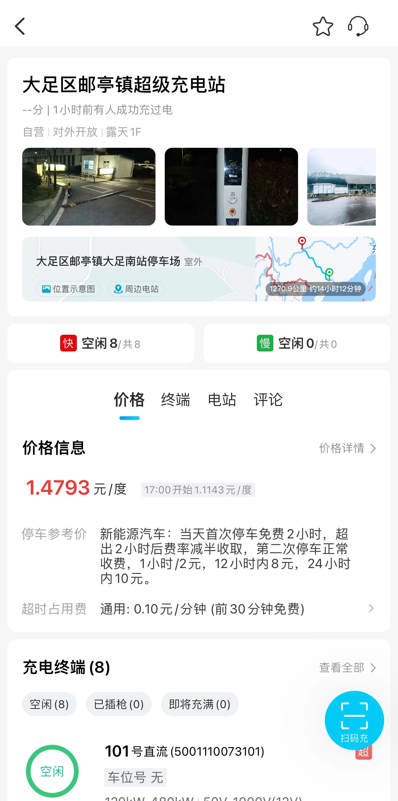 从地图标注里挑选距离最近的充电站点,查看剩余桩位情况以及充电类型(快充或慢充)。