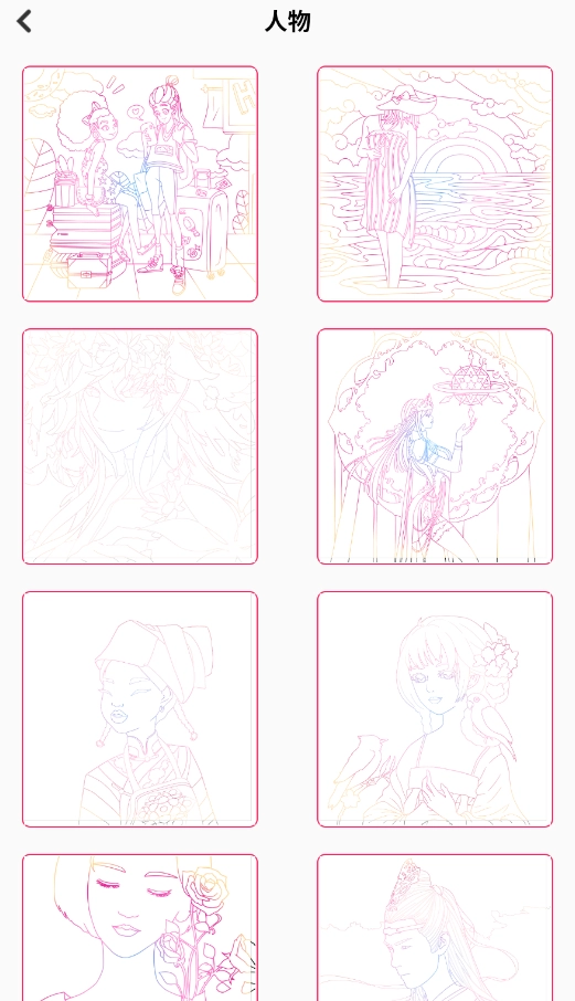 可以从素材库中挑选心仪的线稿图案,这里面涵盖了动漫人物、风景等各式各样的主题模板。