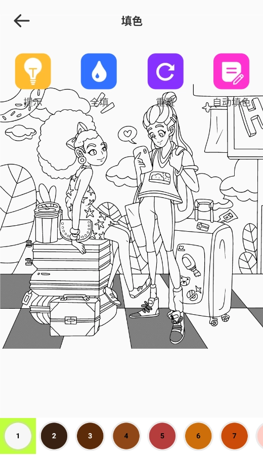 可自由切换智能提示上色、区域快速填充、全局重置等多种绘制模式来使用。