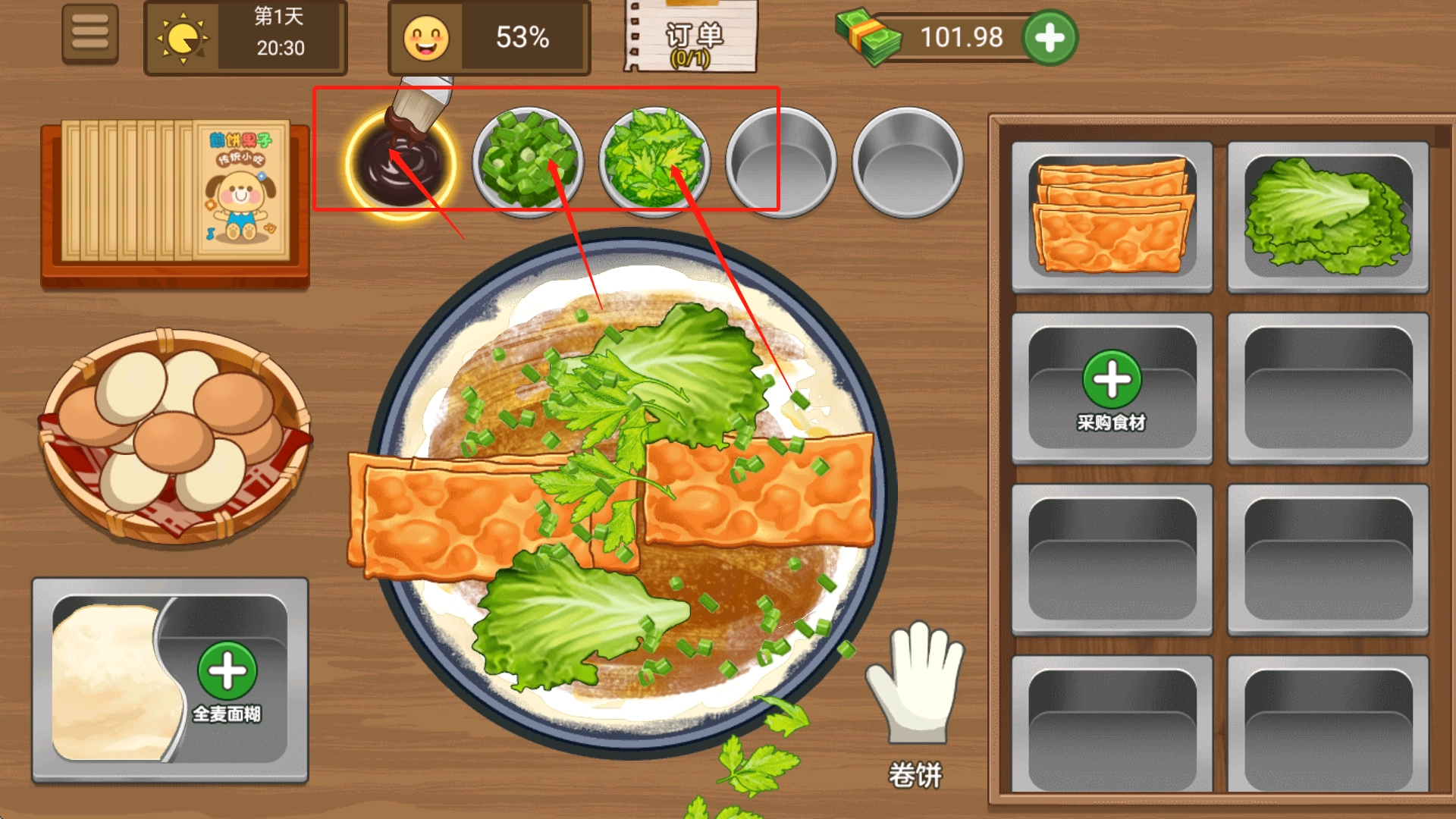 真实的烹饪物理模拟,火候与时间影响成品质量。从面糊调配到翻面时机,还原真实煎饼制作过程。