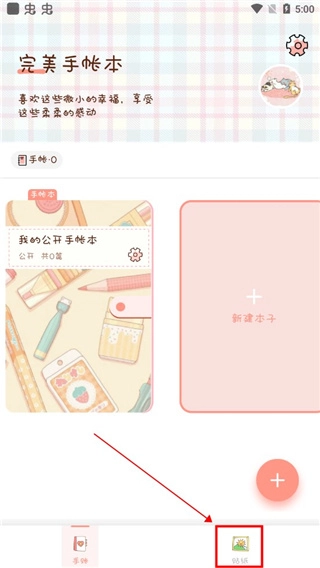 打开软件后,界面设计较为简约,点击右侧的“新建本子”按钮即可创建新的手账本。