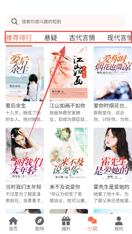 3、通过顶部栏目能够切换题材内容