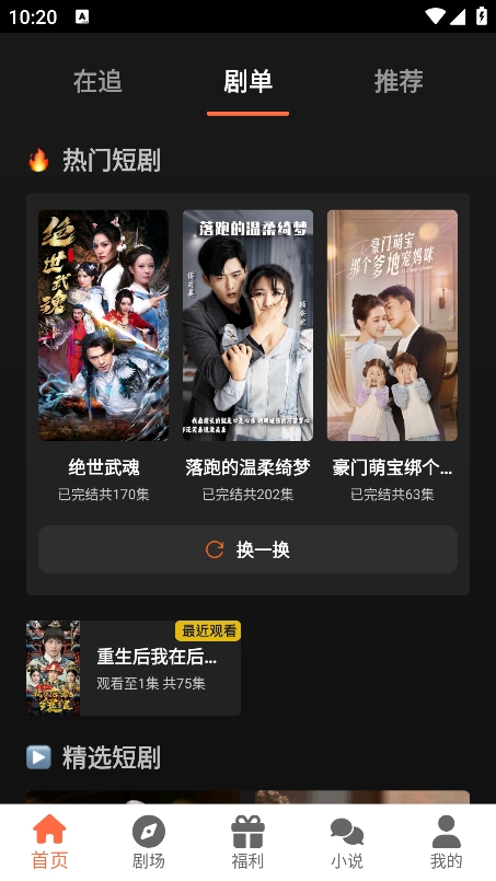 1、打开软件在首页剧单可以查看各种热门短剧