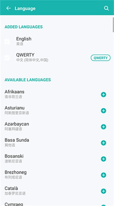 3.进入语言设置界面后,若需切换语言或添加新语言,点击右侧的【+】按钮即可进行添加操作。