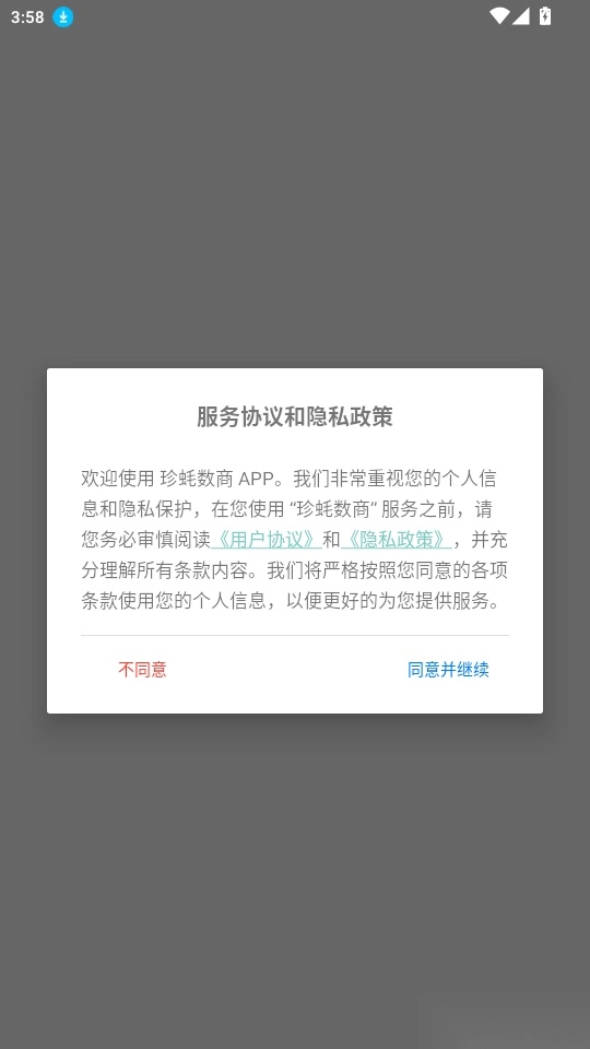 1. 启动软件后,仔细阅读“服务协议与隐私政策”,随后点击“同意并继续”按钮进入下一步。
