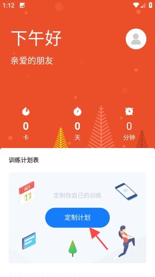 3、进入主界面后,点击【定制计划】图标,即可获取专属健身计划。