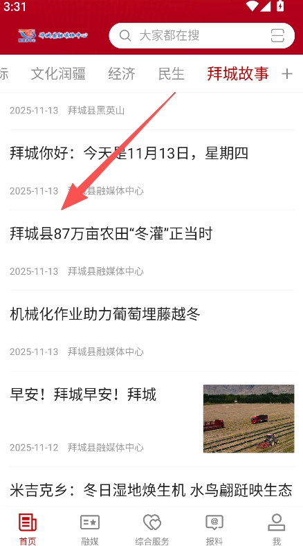 进入拜城故事板块,浏览本地资讯列表。