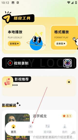 在播放工具的首页,点击底部的【视频】按钮,即可进入影视互动类功能的选择页面。