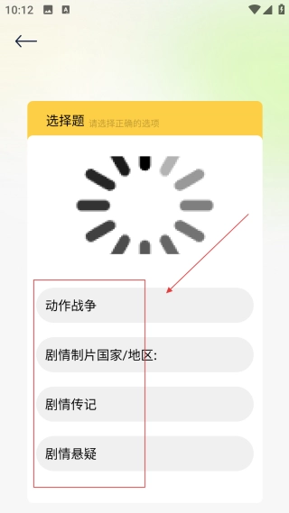 在看图猜类型界面选择对应关卡后,即可进入具体的影视类型猜测题目页面。