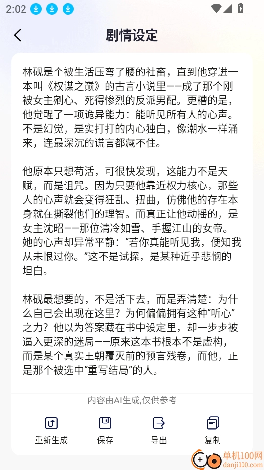 5、接着就能一键生成剧情设定的相关内容,方便快捷地生成并查看。