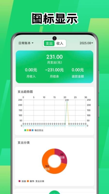 用户也可以将自己的收支明细账单以清晰的图表形式呈现,直观查看趋势图,从而更好地掌握收支情况。