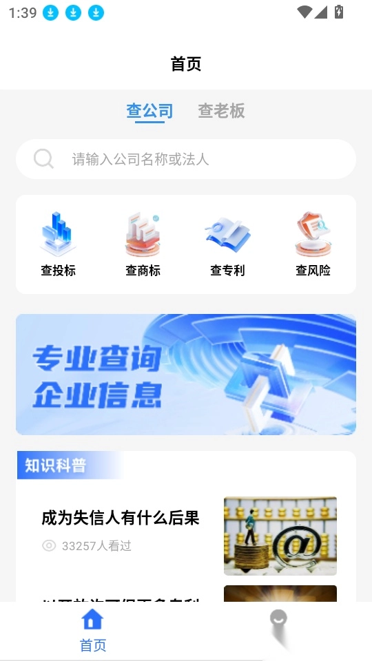 企业信用查询通能让用户便捷地查询企业信息,海量企业数据只需一键即可获取,便于用户专业查询企业信息与专利数据,助力用户轻松获取参考数据并快速掌握;同时,用户还能通过平台科普相关知识,浏览各类实用干货,从而灵活提升自身的商业认知。