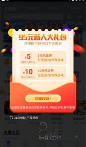 1、第一次进入游戏完成注册,即可领取价值高达95元的新人大礼包,福利满满超实惠!