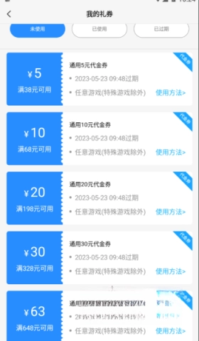 3、如图所示,您的代金券可用于任意游戏(特殊游戏除外),福利丰厚,欢迎尽情使用!