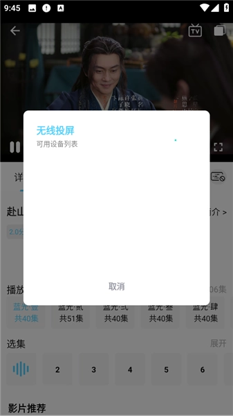 6、投屏播放:可将视频投射到电视等设备上观看,操作时需确保手机和电视处于同一WiFi网络环境,在播放页面点击“投屏”按钮就能完成投屏。