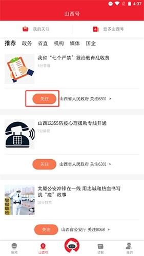 2.选择喜欢的新闻号点击关注按钮即可