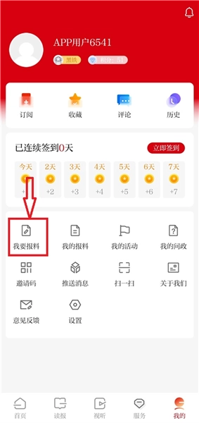 2、接着点开我的界面,再点击【我要报料】按钮。