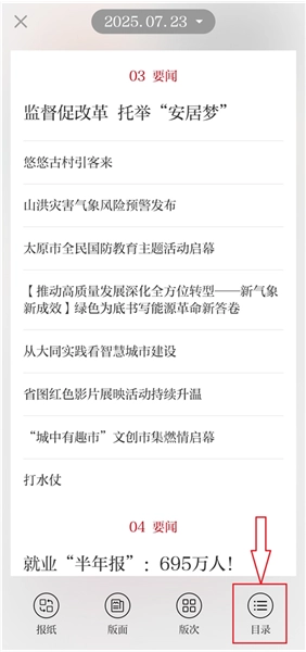 3、点击左下角的【目录】按钮,还能直观了解当期数字报的大致内容。