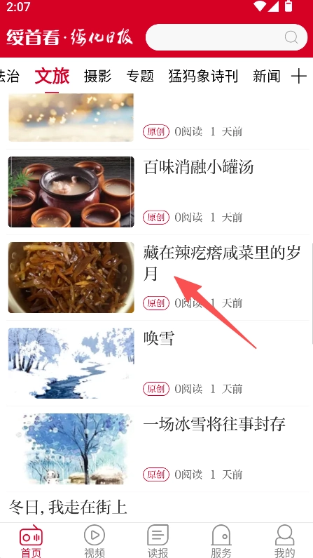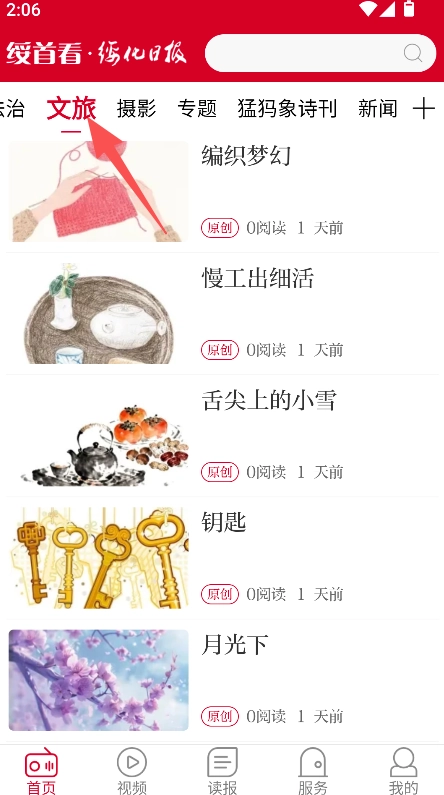 分类板块清晰明了,涵盖文旅、摄影等多个领域;原创内容围绕生活、美食、文学展开,紧密贴合本地用户的日常阅读需求。
