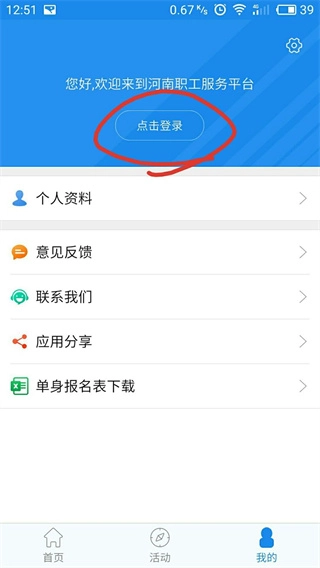 5、注册完成后返回豫工惠主页面,点登录键即可。